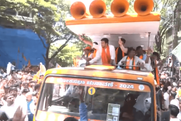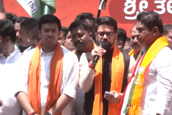 BENGALURU, KARNATAKA – Union Minister Anurag Thakur rallied for BJP candidate Tejasvi Surya during a roadshow in Bengaluru South. The…