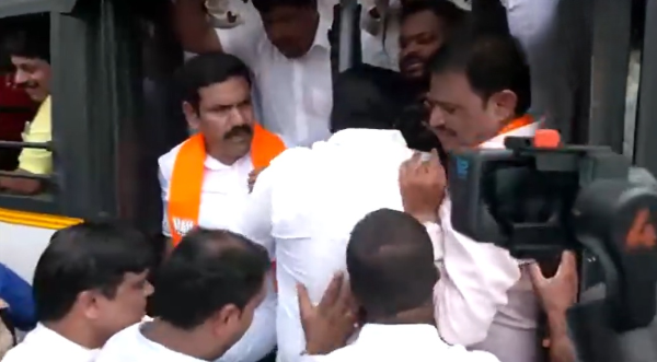 Bengaluru, Karnataka – Tensions escalated today as Karnataka BJP President BY Vijayendra, along with party workers and leaders, were detained by state police during a protest against alleged irregularities within the Mysuru Urban Development Authority (MUDA).