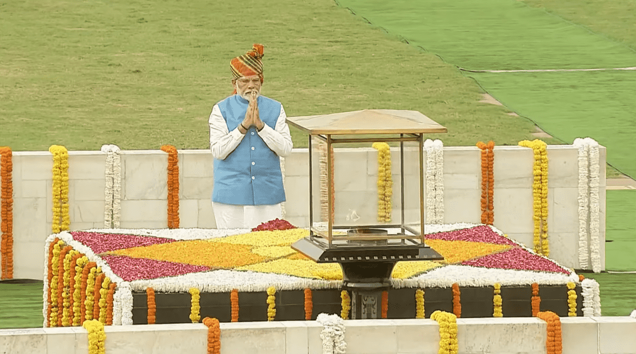 Prime Minister Narendra Modi began India’s 78th Independence Day celebrations with a tribute to Mahatma Gandhi at Rajghat, the revered memorial site in New Delhi. Modi’s visit to pay respects to the iconic leader was an early morning gesture of reverence that set the stage for his subsequent address to the nation.