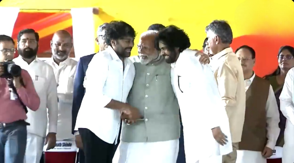 The political arena of Andhra Pradesh was abuzz with excitement as N Chandrababu Naidu took the oath of office as the Chief Minister. The swearing-in ceremony was a grand affair, attended by a host of dignitaries from the worlds of politics and cinema. The attendees included Prime Minister Narendra Modi, Jana Sena chief Pawan Kalyan, Padma Vibhushan awardee and actor Konidela Chiranjeevi, actor Rajinikanth, actor-politician Nandamuri Balakrishna, and other Union Ministers and TDP leaders.